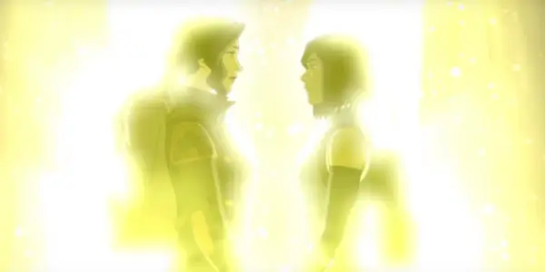 Lengvai aptariamas aspektas Korros legenda Pabaiga yra paskutinėje Korros ir Asami Sato scenoje, nusprendusi kartu išvykti į Dvasios pasaulį. Kai Korra ir Asami patenka į naujai suformuotą „Spirit World“ portalą Respublikos miesto centre, abu sujungia rankas ir dalijasi ilgesio žvilgsniu vienas kito akimis, kai jie išvyksta. Tai daugiau nei aišku, kad Korra ir Asami pradeda romantiką, kai jie eina į dvasios pasaulį .
