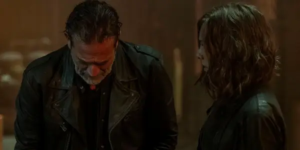 역2Ašaros: Maggie ponders killing Negan in the finale but chooses not to. How important was it to you to give her this moment of ultimate power to decide his fate after all Negan put her through?